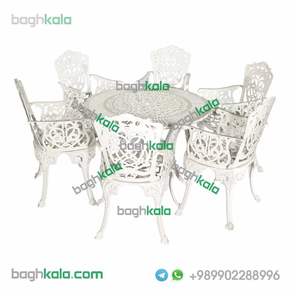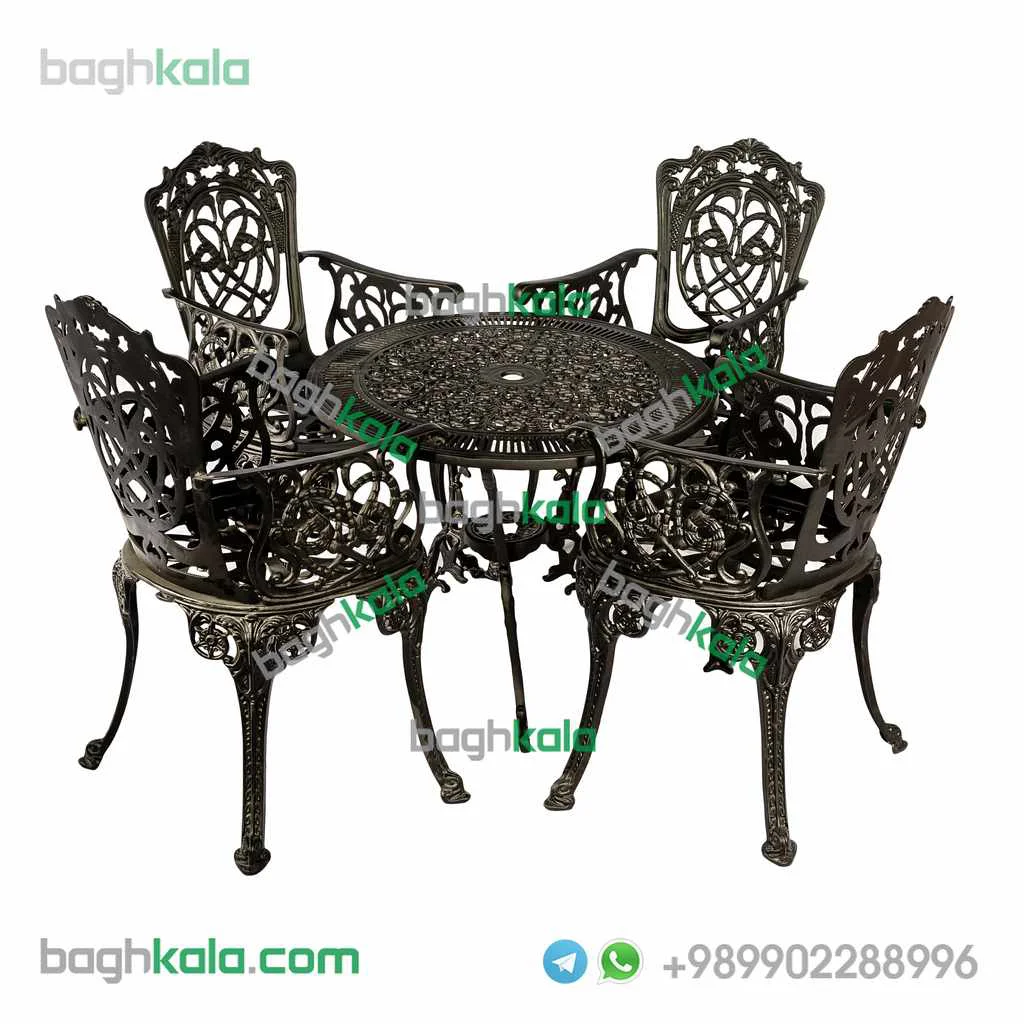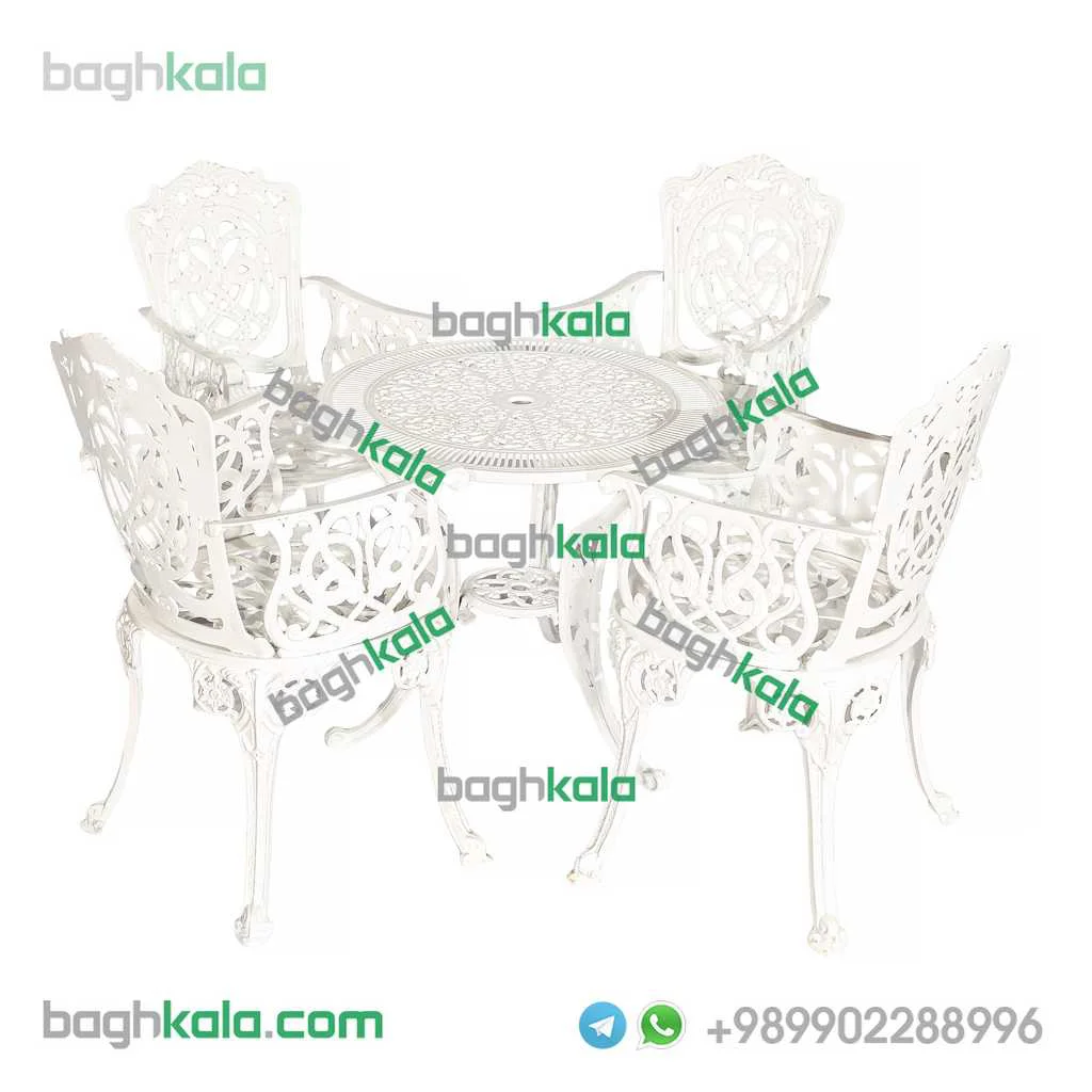 مبلمان فضای باز آلومینیوم کاغذی دسته دار یک ست بسیار شیک و مجلل برای منزل یا ویلای شماست این مبلمان را در ست های دو تا ده نفره می توانید تهیه بفرمایید.