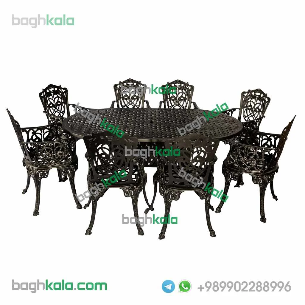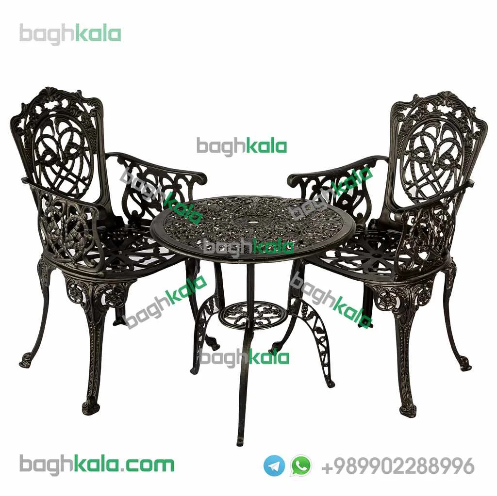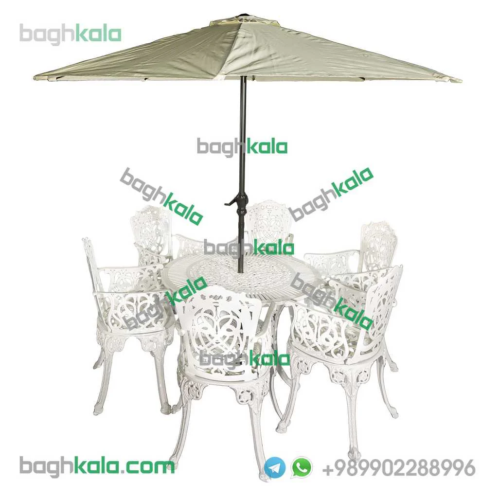 مبلمان فضای باز آلومینیوم کاغذی دسته دار یک ست بسیار شیک و مجلل برای منزل یا ویلای شماست این مبلمان را در ست های دو تا ده نفره می توانید تهیه بفرمایید.